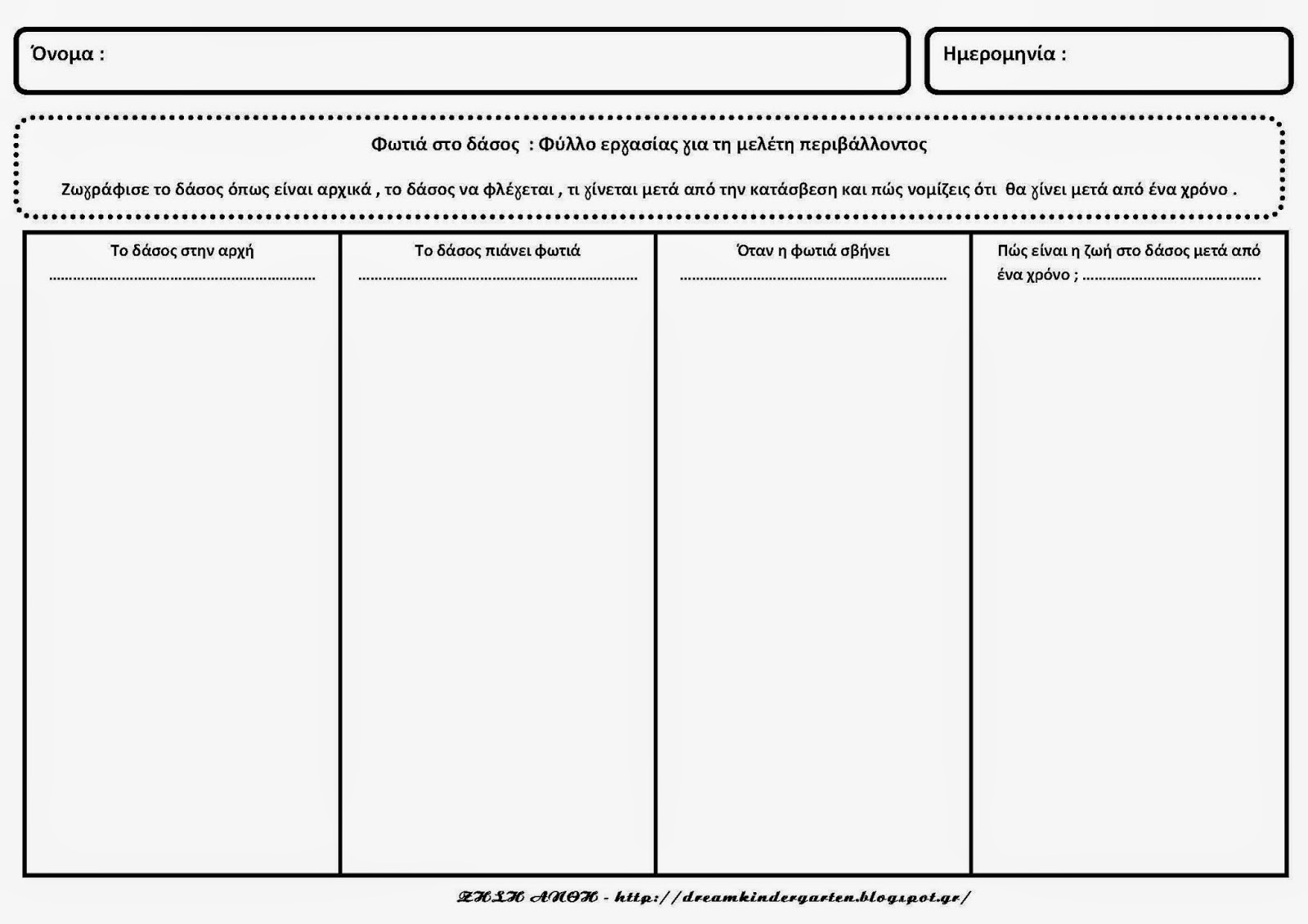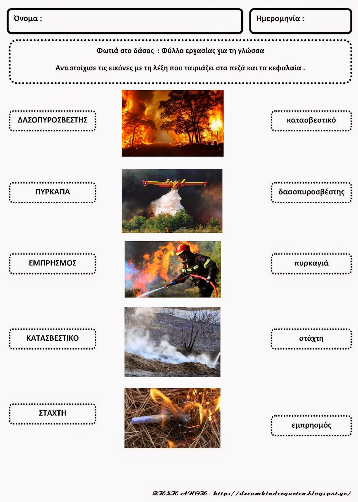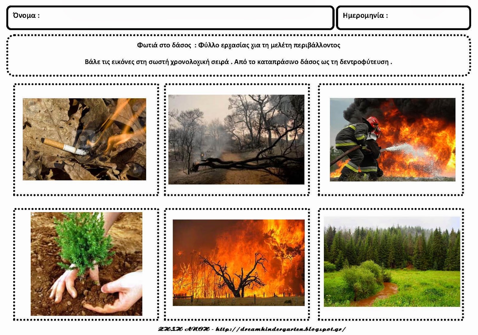 Φύλλα εργασίας με θέμα : Φωτιά στο δάσος